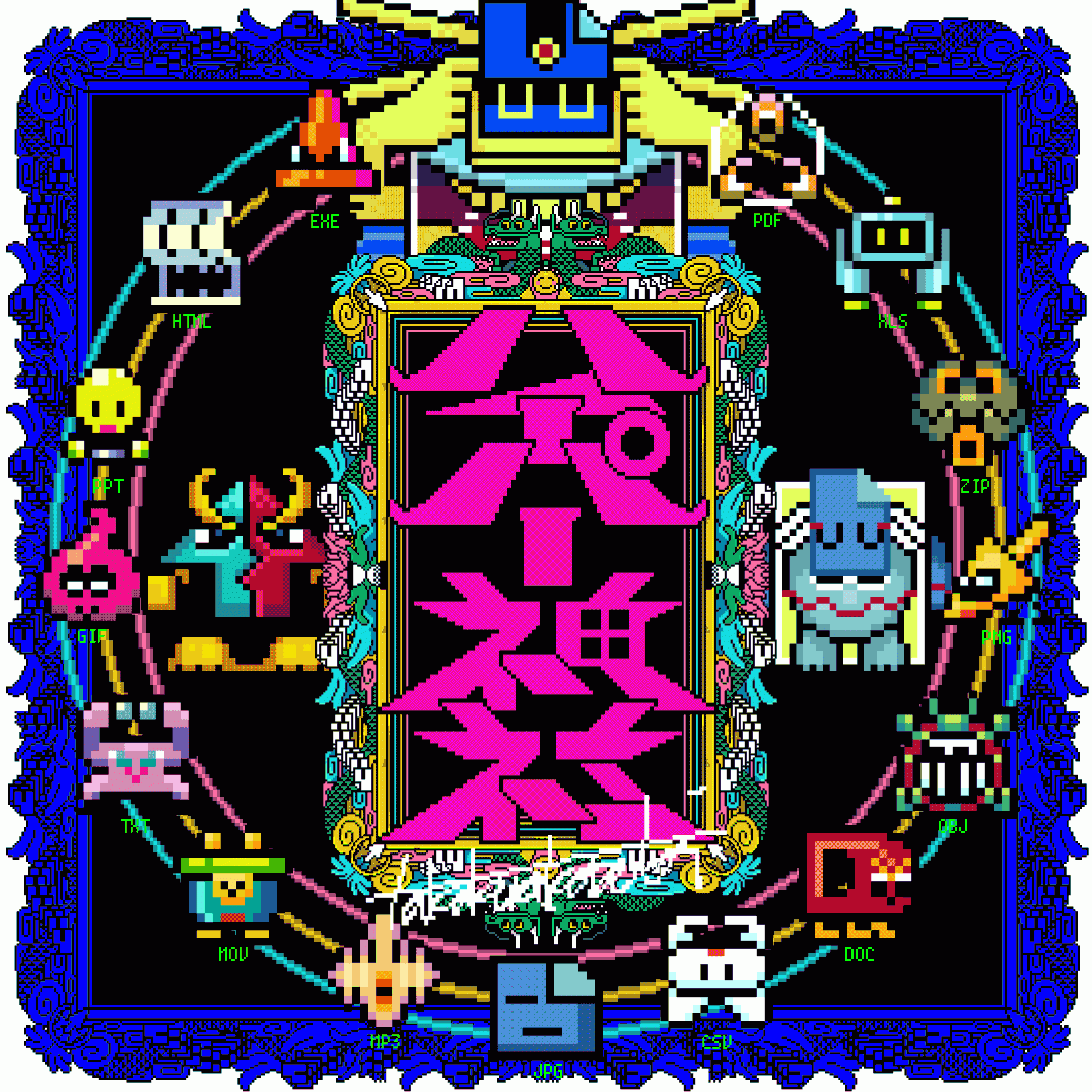 ヤオヨロズの『拡張子』を神格化した15種類x30色=合計450体の神々のNFT。購入者は『ハイパー神主』となり、迎え入れた拡張子の神々をブラウザ上の神社に祀れるようになります。