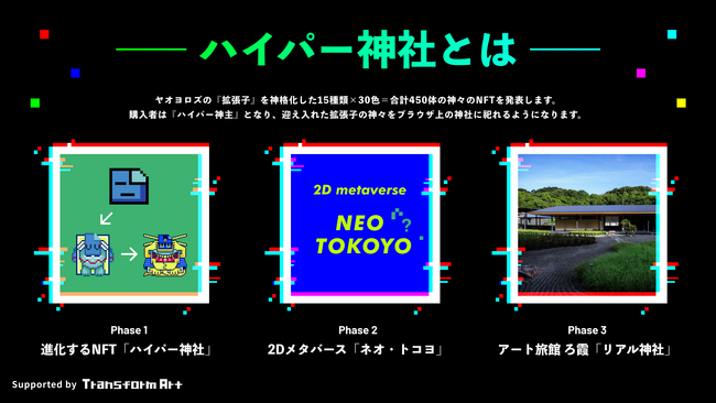 株式会社ゆめみ(本社:京都府京都市、代表取締役:片岡俊行、以下「ゆめみ」)は、NFTアートマーケットプレイス「TransformArt(トランスフォーム・アート)」を本日正式公開します。また、シリーズ第1弾として、日本を代表するアーティストの一人であるたかくらかずき氏とのコラボ作品を販売開始します。