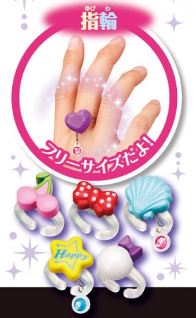 「アクセサリーデザイナー」は、付属のデコパーツとイヤリングパーツや指輪パーツを本体にセットして装着させることで、オリジナルのイヤリングと指輪を簡単に作ることができます。パーツの組み合わせは50通り以上になります。デコパーツを外して別の組み合わせで繰り返し作る事も可能です。その日の服装にあわせたり、オシャレアイテムとして楽しみが広がります。