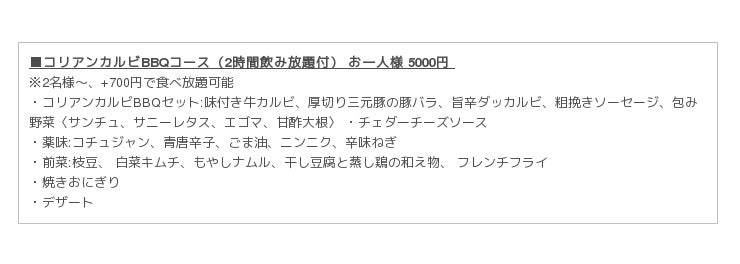 ・コリアンカルビBBQコース5000円を4300円にてご提供