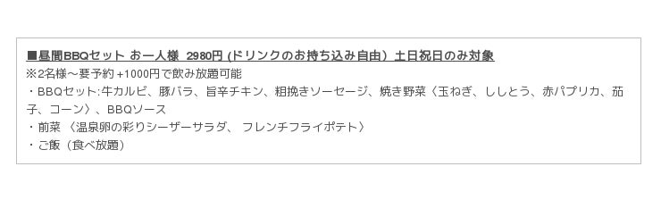 ・お昼間BBQセット飲み放題付3980円を3500円にてご提供