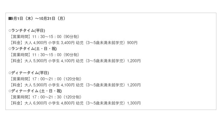 ※料金はお一人様料金になります。※料金は税金・サービス料10%を含みます。
