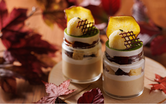 渋皮栗と、絹のような食感のさつま芋“シルクスイート”を使用して贅沢なボトルパフェを作りました。