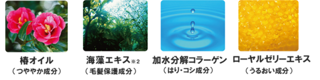 ■椿オイルや海藻エキスなど髪にやさしい4つのトリートメント成分