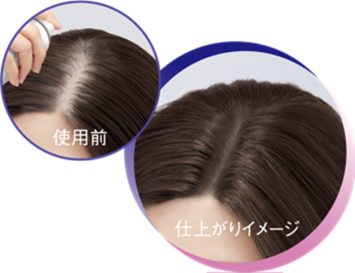 微粉末が髪1本1本に付着することで、太く、はり・コシのあるボリュームヘアを演出し、気になる白髪も頭皮の透けも同時に目立たなくなる増毛感覚スプレーです。