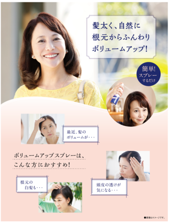 株式会社ダリヤ(本社:名古屋市中区、代表取締役社長:野々川 純一)が展開する、大人の髪悩みをケアする「サロン ド プロ」から、「ボリュームアップスプレー」が新登場!年齢を重ねるにつれ、女性はうす毛・髪のボリュームダウンに対する悩みが強くなるもの。白髪や頭皮の透けが気になる部分にスプレーをするだけで、微粉末が髪1本1本に付着し、うす毛・白髪を自然に隠しながら太く、はり・コシのあるボリュームヘアを演出します。椿オイルや海藻エキスなど髪にやさしい4つのトリートメント成分を配合。雨や汗で落ちにくく自然なボリューム感が持続します。シャンプーで簡単に洗い落とすことができるのも便利。へアカラーした髪にも自然になじむ、2色をご用意しました。