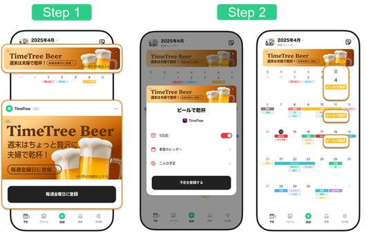 TimeTreeアプリ上の配信面(マンスリー面、デイリー面、予定作成完了面)から予定登録訴求を行います。