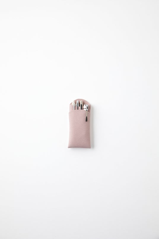 ペンや印鑑など細かなものをまとめるのに便利なスリムタイプ。ペン先で衣服が汚れることも防いでくれる嬉しい側面も。胸ポケットに入れるとちらりと覗く山型のカーブがスタイリングのアクセントにもなります。