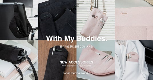 医療従事者にとって、業務で不可欠な機器や道具は「Buddy」そのものです。日々の忙しい業務の中で、道具が整理された状態を保ち、スムーズに使えるようにアシストする、クラシコらしいツールを開発いたしました。ハードな医療現場で働く、医療従事者にとって新たな「Master-piece」となるよう、オリジナルアクセサリーコレクション「SUEDEシリーズ」を展開いたします。