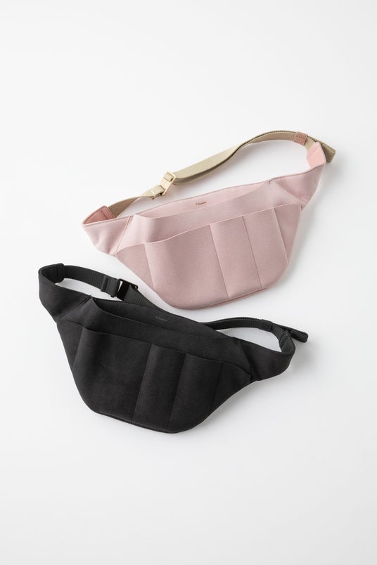 腰に巻いて使用するラップバッグは、身体に寄り添う形でストレスを感じさせない装着感が特徴。背面をメッシュにすることで、熱のこもりを軽減します。