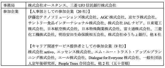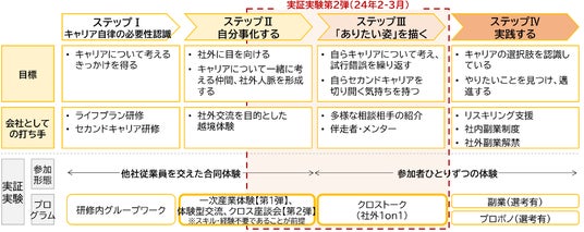 本コンソーシアムでは、キャリア自律がまだ「自分事」になっていないミドルシニア従業員を対象に複数社合同で活動することにより、参加者が多様なキャリア観を享受でき、自身を見つめ直す機会になるという仮説のもと、実証実験を通じて施策の効果を検証して参ります。