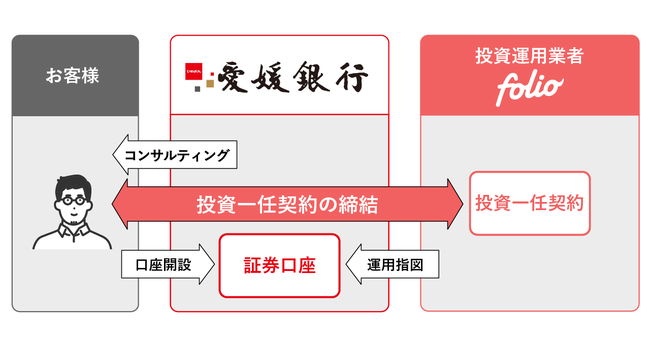 株式会社愛媛銀行(本社:愛媛県松山市、代表取締役頭取:西川 義教、以下:愛媛銀行)と株式会社FOLIO(本社:東京都千代田区、代表取締役CEO:甲斐 真一郎、以下:FOLIO)は、愛媛銀行のお客様向けにFOLIOの投資一任プラットフォーム「4RAP(フォーラップ)」を活用したファンドラップサービスを2023年4月(予定)より提供いたします。