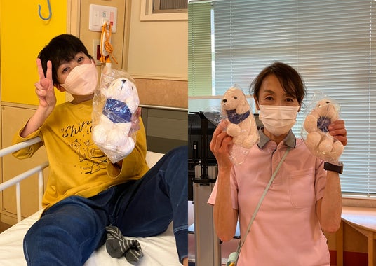 今年1月には従業員の皆様が病棟を訪問され、入院中の子どもたちに直接ぬいぐるみをプレゼントされました。ぬいぐるみを見て目を輝かせる子どもたち、受け取ったぬいぐるみを「かわいい!」と抱きしめる子どもたちの様子をご覧になり、ファシリティドッグによる心のケアを実感していただくことができました。