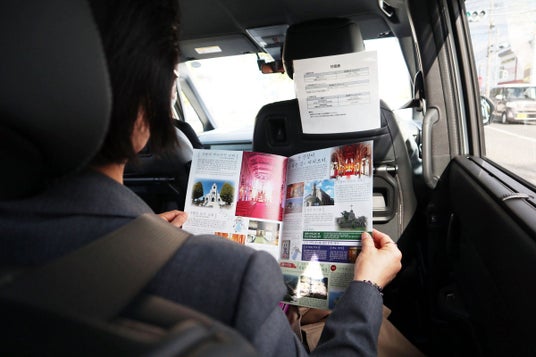 ▲ライドシェアの車内では平戸の観光パンフレットなどを見て過ごしました。