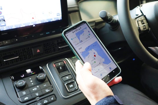 ▲ライドシェアの車内でドライバー用アプリを操作する様子