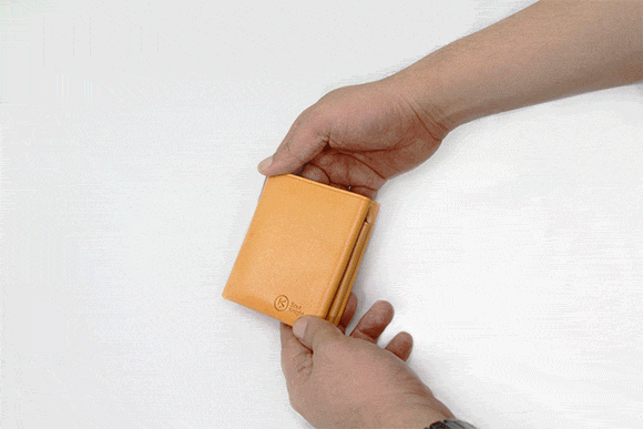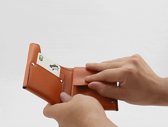一般的な二つ折り財布と遜色なく使用できるようにデザインしました。