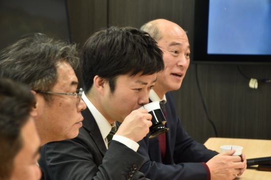 特別ブレンドのコーヒーでおもてなしを受ける三条市長