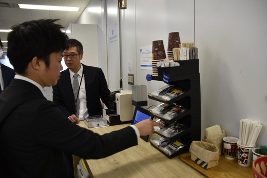ジンマー・バイオメット様の給湯室には自社ブレンドのドリップパックが設置されている
