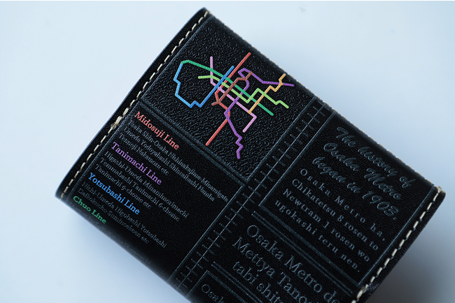 Osaka Metroの路線図やスローガン、メッセージが描かれ、鉄道好きの心をくすぐるデザインに仕上がりました。お財布にどんなメッセージが描かれているかは届いてからのお楽しみです。