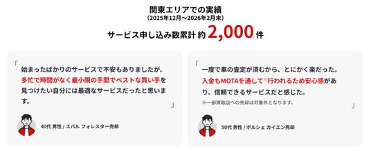 2025年12月に関東で先行開始して以来、多くのユーザーから「交渉のストレスがなくて本当に助かった」という声をいただきました。また、買取店様からも「移動時間がなくなり、本来の商談に集中できる」と高く評価されています。