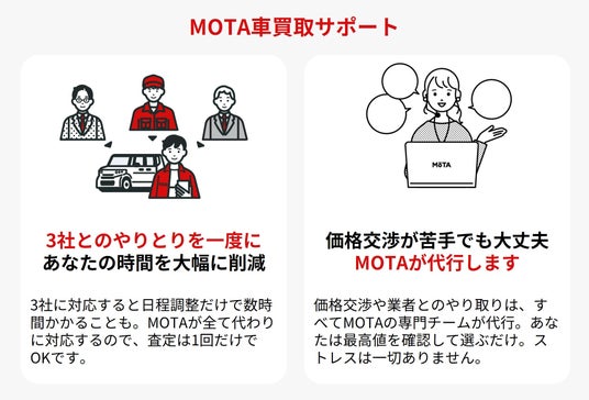 ・アポイント調整から車両検査・価格交渉まで代行する「MOTA車買取サポート」