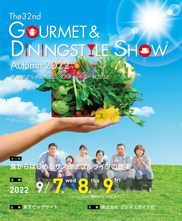 会期:2022年9月7日(水)~9日(金) 会場:東京ビッグサイト東展示棟 テーマ:食からはじめるサステナブルライフの提案