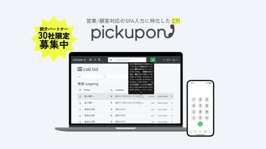 pickupon株式会社(千葉県市川市、代表:小幡洋一、以下pickupon)は、営業/顧客対応のSFA入力に特化したAI電話「pickupon(ピクポン)」の紹介パートナーを、30社限定で募集開始いたします。