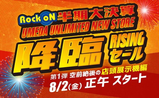 音楽制作機材専門ショップ「Rock oN Company」(本社:東京都渋谷区)は創業35周年と8月下旬に新たにオープンするRock oN新梅田店の誕生を記念し、2024年8月2日(金)正午より「半期大決算 Umeda Unlimited New Store降臨 Rising セール」を開始いたします。