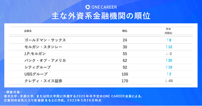 アメリカでの銀行破綻や大規模な人員削減など、ネガティブなニュースが続いている外資系金融機関ですが、ランキングでは順位を上げる企業が目立ちました。