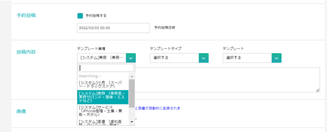 投稿時やクチコミ返信時にテンプレートから投稿/クチコミ返信のテンプレートを選択することができる機能。