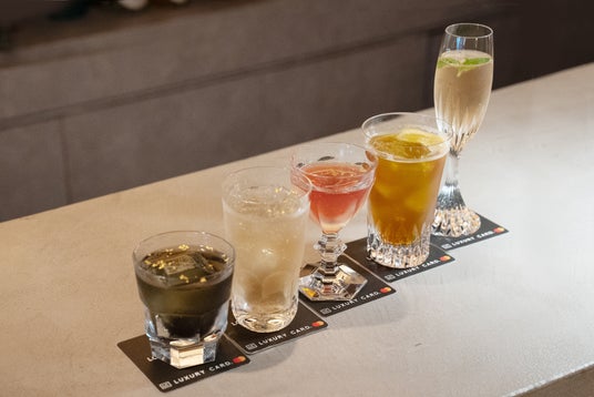 カードカラーのオリジナルカクテルやパートナー社の希少ドリンクなどラインナップも新たに。LUXURY CARDの世界観に没入できるバー体験を。