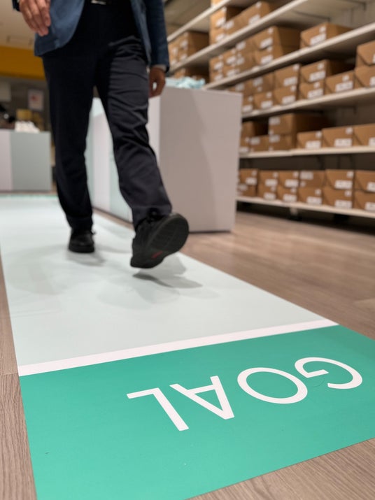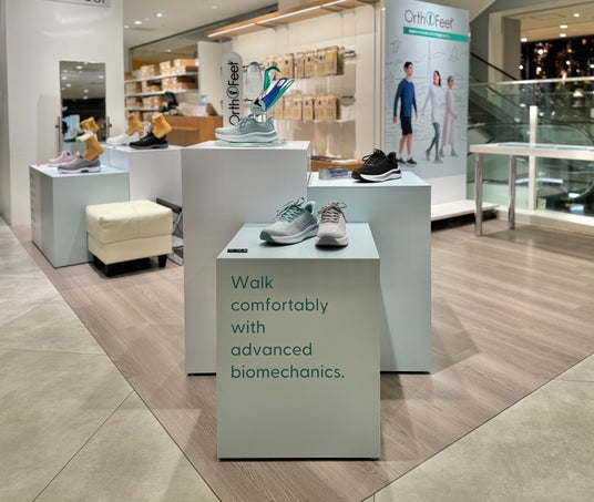Orthofeetのアクティブなモデルを試着するだけでなく、実際に歩いてみて、快適な履き心地や、脱ぎ履きが簡単な「ハンズフリー」機能の魅力などを体感していただける「ウォーキングレーン」を店内に設置
