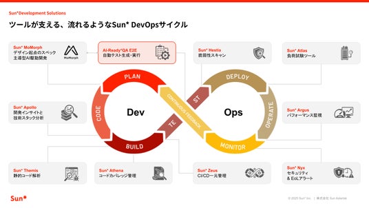 株式会社Sun Asterisk(本社:東京都千代田区、代表取締役:小林 泰平、以下「Sun*」)は、AIを活用してE2Eテストを自動化するソリューション「AI-Ready* QA E2E(読み:えーあいれでぃー きゅーえー いーつーいー)」の提供を開始したことをお知らせします。