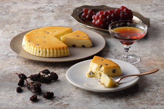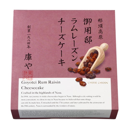 数種類のチーズをブレンドした生地に、小粒でありながら濃い味わいがお楽しみいただけるカレンズを使用し、ラムをあわせました。生地にラムを配合することで、口の中に芳醇な香りがひろがるとともに、レーズンの酸味がひろがり、チーズとラムレーズンのマリアージュがお楽しみいただけます。御用邸チーズケーキのしっとりとした食感となめらかな舌触りはそのままに、食べ進めていただくと所々に顔を出すレーズンの食感の変化がアクセントとなります。レーズンの華やかな香りが余韻として残ることで、最後のひと口までラムレーズンの大人な味わいをお楽しみいただけます。
