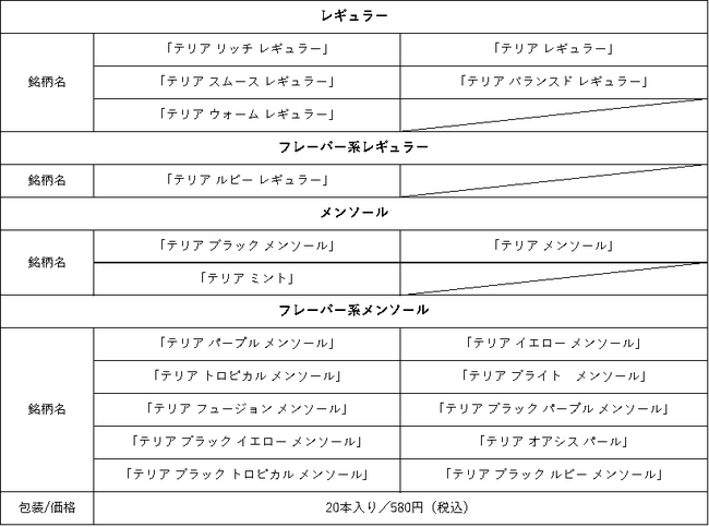 今回全国販売する「TEREA(テリア)」は下記の通りです。