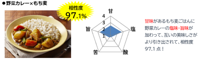 カレーは雑穀が合うことがAIにより証明されました。特に「野菜カレー×もち麦ごはん」は相性度97.1%。