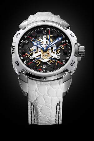 2015年に発表された43mmサイズの「TNTロイヤルレトロ43 ボニー&クライド」は、ホワイトベースのBonnieとブラックベースのClydeという、映画のキャラクターになぞらえたネーミングで話題となりました。2023年、ピエール・ドゥロッシュは、いち早くsold outとなっていたBonnieモデルをリニューアルしたセカンドバージョンを101本限定で製作を開始します。