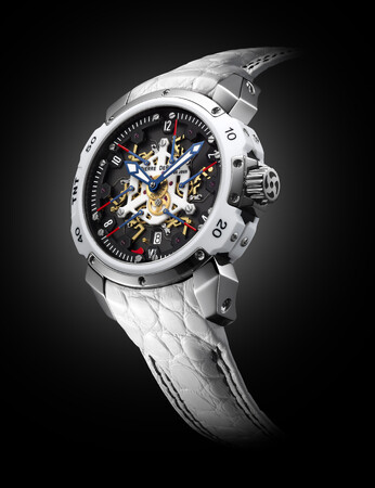 ホワイトセラミックパウダーを混合することで白く発色する新素材「itr2」をベゼルに使用した個性的なケース構造はそのままに、文字盤のカラーリング構成を一新し、より引き締まった顔立ちのBonnieとなりました。