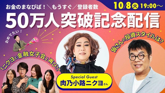 SBIレオスひふみ株式会社の傘下で投資信託「ひふみ」シリーズを運用するレオス・キャピタルワークス株式会社(本社:東京都千代田区、代表取締役社長:藤野 英人、以下「当社」)は、お金や投資についてたのしく・わかりやすく発信するYouTubeチャンネル「お金のまなびば!」の登録者数50万人達成目前記念配信を10月8日(火)19時より実施いたします。https://www.youtube.com/live/fLZ489NorGY