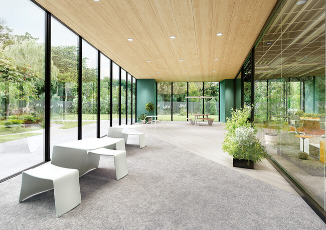 バイオフィリックデザインを取り入れたオフィスイメージ。