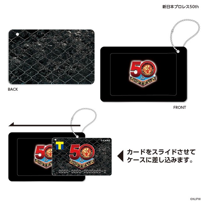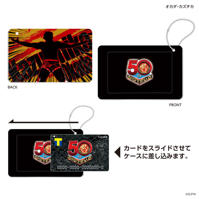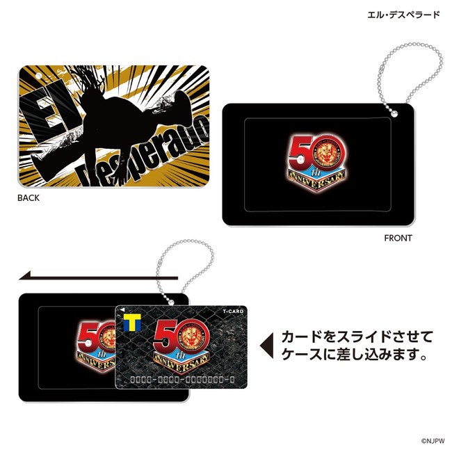 さらに「Tカード(新日本プロレス)」公式サイトでは、カードの利用時に便利なスライドしてICカードを収納するカードケースの予約受注も開始します。飯伏幸太選手、オカダ・カズチカ選手、エル・デスペラード選手のシルエットをモチーフにした、クールで持ち歩きやすいデザインです。50周年を記念して、カードをスライドするとロゴが見える設えとなっています。