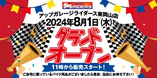 カー&バイク用品のリユース専門店「アップガレージ」を全国展開する株式会社アップガレージグループ(本社:神奈川県横浜市、代表取締役社長:河野映彦)は、2024年8月1日に、フランチャイズ店の「アップガレージライダース東岡山店」をアップガレージ東岡山店に併設して新規出店いたします。