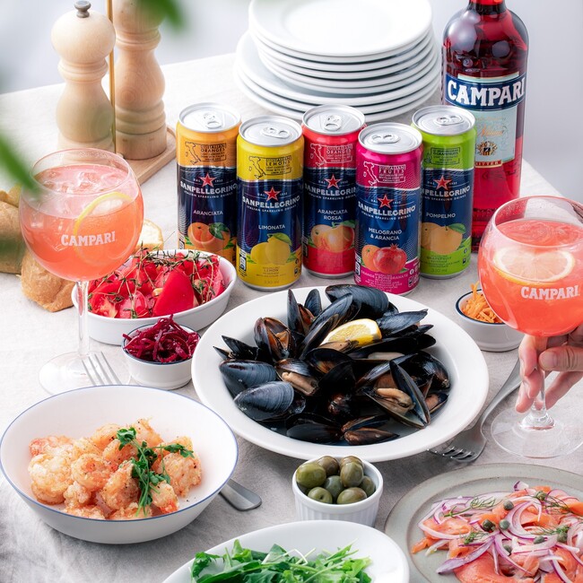 イタリアを代表するリキュール 「カンパリ」と、イタリア発・大人気の果汁入り炭酸飲料 「サンペレグリノ」の豪華コラボセットが当たる!