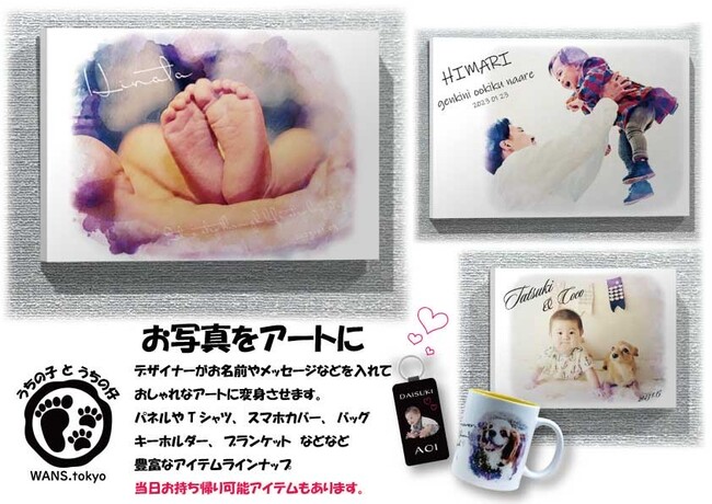 ご家族やペットのスナップ写真で、世界に一つだけのオーダーメイド雑貨をお作りします。LINEで写真を送るだけでOK!経験豊富なデザイナー、オシャレで普段使いしやすいデザインに仕上げます。