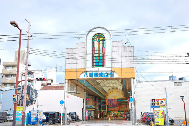 大阪メトロ・朝潮橋駅の西側にある八幡屋商店街は、日用品店や飲食店を中心に30店舗以上のお店が並ぶ、下町情緒あふれる商店街です。2023年1月15日(日)まで、商店街のあちらこちらに流れ星をモチーフにした光のオブジェを飾り、クリスマスから新年への希望の光で彩ります。