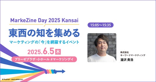 株式会社ベクトル(本社:東京都港区、代表取締役会長兼社長:西江 肇司、東証プライム:6058)の子会社である株式会社キーワードマーケティング(東京都港区、代表取締役:滝井 秀典、以下「当社」)は、当社代表の瀧沢が、6月5日(木)に開催される『MarkeZine Day 2025 Kansai』にて、「広告費を賢く使ってしっかり儲ける!低コストで認知も獲得も両取りする『検索創出型マーケティング』」と題したセッションに登壇することをお知らせいたします。