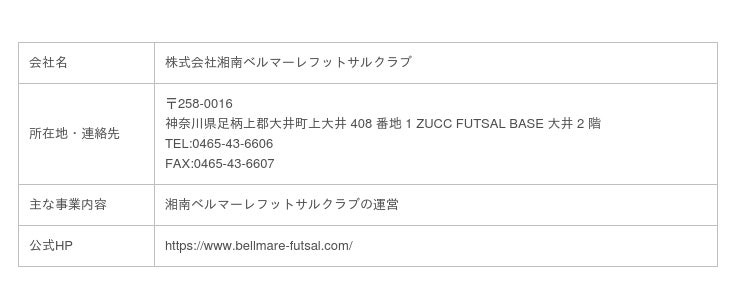 【株式会社湘南ベルマーレフットサルクラブについて】