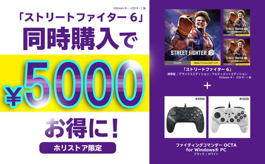 ホリストアで「ストリートファイター6」Steamキー(CDキー)版と当社製格闘パッドで、5000円引きとなるセット品が発売となります。