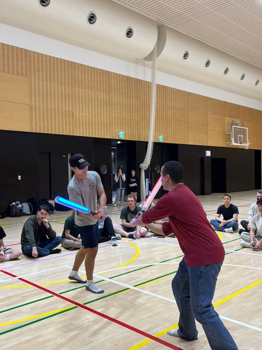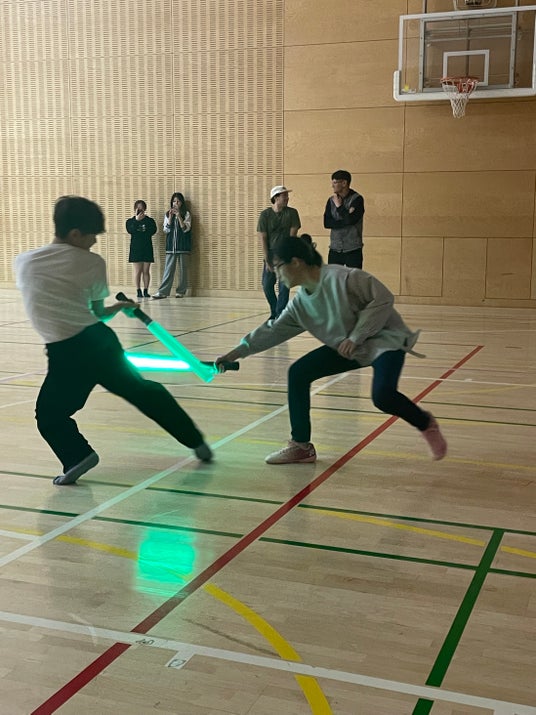 本イベントは「Light Saber Tournament」と銘打ち、SF映画を連想させるBGMが流れる薄暗い体育館で、光る刀を使った対戦を楽しんでいただく機会となりました。