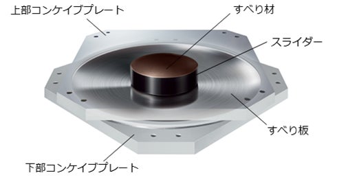 ※3 常時建物の重量を支持するステンレス製の部材です。スライダーの上下面は取合うすべり板に合わせて球面加工が施されています。